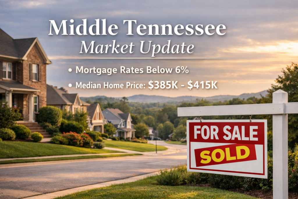 Mortgage Rates Drop Below 6%: What This Means for Middle Tennessee Buyers There’s been a meaningful shift in the housing market across Middle Tennessee — and this one may actually matter for buyers and homeowners. Mortgage rates have recently dipped below 6% on average, improving affordability compared to the 7%+ rates many buyers faced last […]
